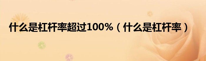 大家好,小华来为大家解答以上的问题。什么是杠杆率超过100%,什么是杠杆率这个很多人还不知道,现在让我们一起来看看吧!