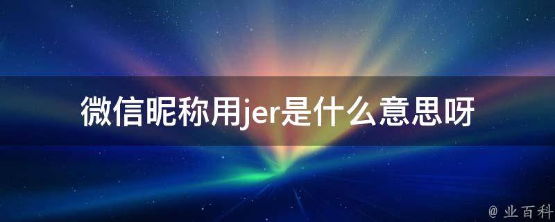 微信昵称用jer的意思是杰尔,是个简短的名字,叫Jer的人性格一般非常活泼。类似的名字有:Jeremias、Jeremy、josse、jakov、siegert、boaz、ercole、fortunato、gosse、lazaro等。