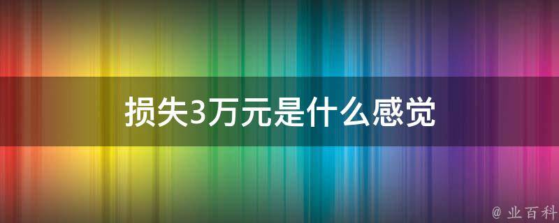 损失3万元会让人感到痛苦、失望和沮丧。这可能会让人对投资、储蓄和未来的财务计划产生怀疑,并重新考虑他们的财务目标。此外,这还可能会对个人的心理和情绪产生负面影响,导致焦虑、抑郁和压力等问题。