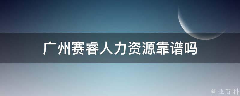 广州赛睿人力资源靠谱。公司福利待遇好,五险一金,成立于2013年,位于广东省广州市,是一家以从事商务服务业为主的企业。开始是电话面试,会先问自己的基本情况,然后对简历的一些经历进行过问,后面就是询问一下对猎头的理解。公司培训体系非常好,部门领导也会手把手教。