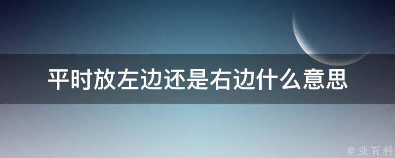 平时放左边还是右边通常用于询问在某种情况下应该选择哪一边或采取哪种行动,具体含义取决于上下文。例如,如果在布置家具时有人问你应该把某个物品放在左边还是右边,那么意思是询问你的意见或建议,回答时,你可以考虑空间布局、实用性、美观等因素来给出建议。