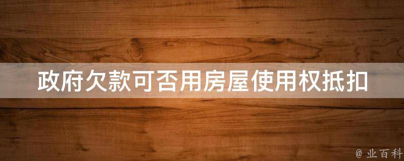 视情况而定。政府欠款是否可以用房屋使用权抵扣,需要根据具体情况进行评估和协商,并遵守相关法律法规。房屋使用权是指房屋所有人对其所有房屋享有的占有、使用、收益、处分的权利。房屋使用权抵扣债务通常需要满足一定的条件和程序,例如需要经过双方协商同意,并按照相关法律法规进行合同变更等手续。