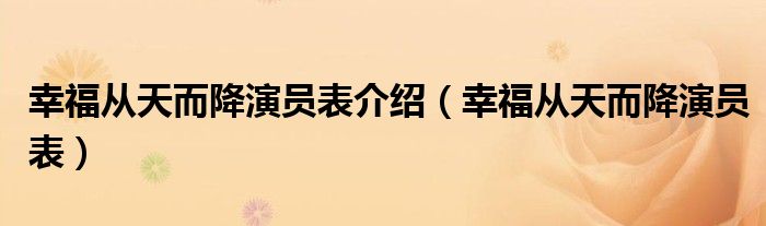 大家好,我是小科,我来为大家解答以上问题。幸福从天而降演员表介绍,幸福从天而降演员表很多人还不知道,现在让我们一起来看看吧!