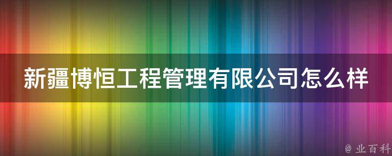 新疆博恒工程管理有限公司很好。新疆博恒工程管理咨询有限公司是一家从事建设工程监理、公路工程监理、水利工程建设监理等业务的公司。企业的经营范围包括:检验检测服务、建设工程设计、河道疏浚施工专业作业、文物保护工程施工、矿产资源勘查、公路管理与养护等。