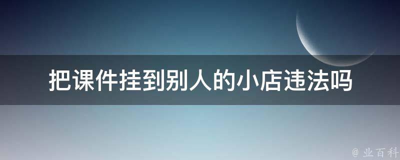 视情况而定。如果获得他人认可,把课件挂到别人的小店不违法。但是如果未经许可将他人的作品或知识产权用于商业目的,可能会侵犯他人的权益,并可能面临法律责任。因此,如果需要使用他人的作品或知识产权,请确保遵守相关法律法规和知识产权保护规定。