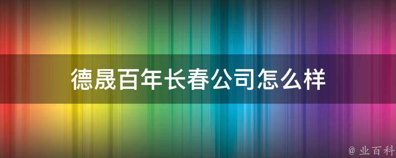 德晟百年长春公司是指吉林省德晟百年健康管理有限公司,是一家有业务广、服务好的健康管理公司。该公司位于长春市凯旋路与台北大街交汇长春宽城,经营范围包括健康养生,可以为人们提供全方位的健康管理服务。