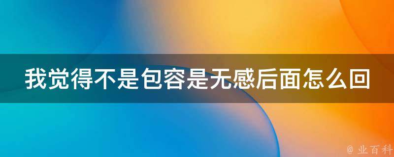 我觉得不是包容是无感后面怎么回