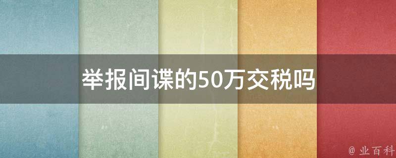 举报间谍的50万不交税。依据《财政部国家税务总局关于个人所得税若干政策问题的通知》(财税字[1994]20号)第二条第(四)项规定:个人举报、协查各种违法、犯罪行为而获得的奖金暂免征收个人所得税。因此举报间谍而获得的奖金暂免征收个人所得税。