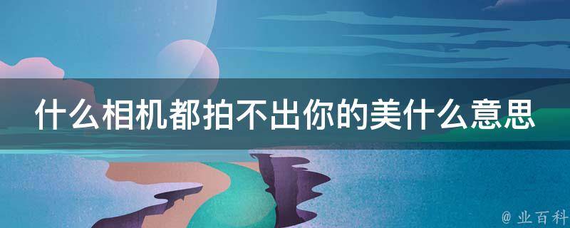 什么相机都拍不出你的美这句话的意思是:你非常美丽,没有任何相机或技术能够准确地捕捉到你的美丽。这是一种夸张的说法,用于表达对某人的高度赞美和欣赏。它也可以被理解为一种浪漫的表白,表达对某人的深深爱意和欣赏。