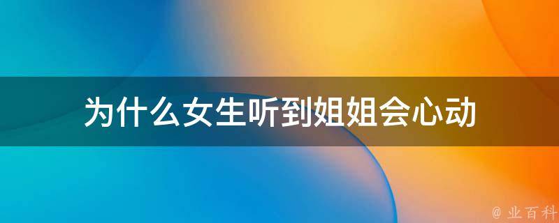 女生听到姐姐会心动是因为这是一种表达亲近感和认同感的方式,被称呼为姐姐意味着被认为是一个年长一些的女性,这可以增强女性的自信心和自尊心。此外,这种称呼也可以暗示着一种保护和照顾的关系,使得女性感到更加安全和受到关爱。