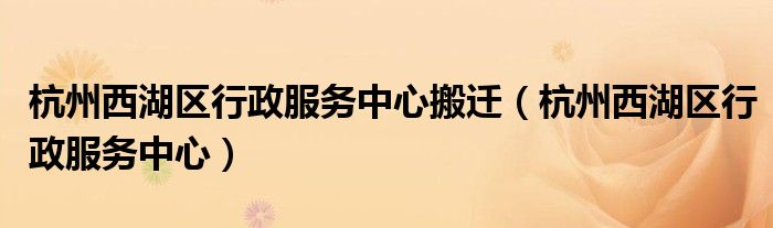 大家好,小华来为大家解答以上的问题。杭州西湖区行政服务中心搬迁,杭州西湖区行政服务中心这个很多人还不知道,现在让我们一起来看看吧!