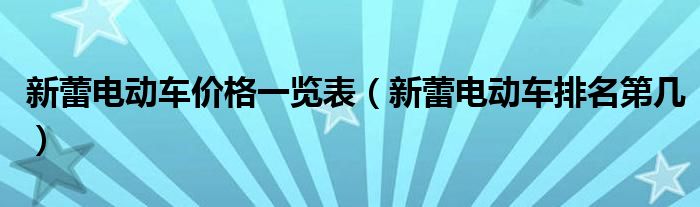 大家好,我是小科,我来为大家解答以上问题。新蕾电动车价格一览表,新蕾电动车排名第几很多人还不知道,现在让我们一起来看看吧!