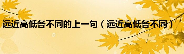 大家好,我是小科,我来为大家解答以上问题。远近高低各不同的上一句,远近高低各不同很多人还不知道,现在让我们一起来看看吧!