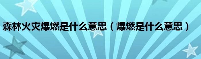大家好,小联来为大家解答以上的问题。森林火灾爆燃是什么意思,爆燃是什么意思这个很多人还不知道,现在让我们一起来看看吧!