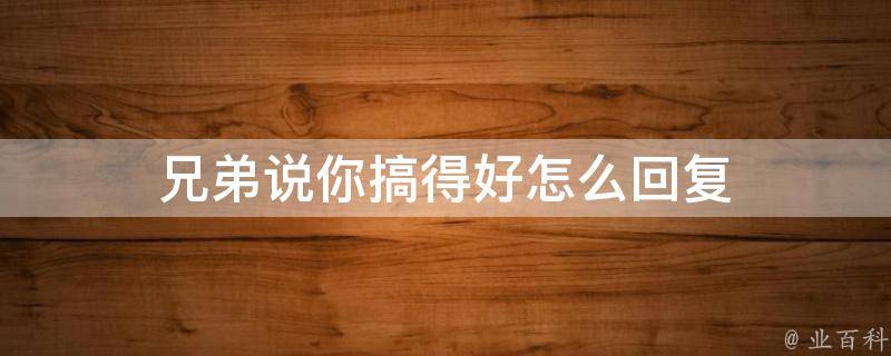 兄弟说你搞得好可以先礼貌性地回答谢谢,这是为人之基本,然后再说我只是在我力所能及的范围把事情做到最好,而且我的潜力还有待开发。谢谢你的鼓励,我将会在未来的日子借鉴这次的经验把后面的事做得越来越好。这样的回复可以增进友谊,让好兄弟感受到被重视和关心。