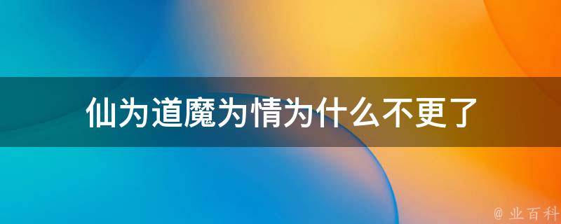 小说《仙为道魔为情》还在更新。《仙为道魔为情》是连载于创世中文网的一部短篇类网络小说,作者是绝色魅笑。在书中,身为主角的莫离,是不折不扣的,犹如反派的恶魔。在剧情的最开始,莫离也只是一颗渺小且卑微的棋子,后来一步步成长,走向了顶峰。