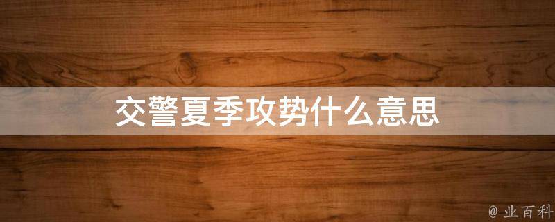 交警夏季攻势意思是集中开展夏季路面秩序净化攻坚,在城市,加强公园、商圈、车站、医院周边、烧烤聚集地、繁华夜市、市民广场等人流车流密集区域的巡逻管控。在公路,加强国省道平交路口、急弯陡坡、临水临崖等风险路段管控,最大限度压降事故风险。开展酒醉驾违法犯罪行为集中整治,加强城区餐饮娱乐场所、地摊夜市周边道路管控。
