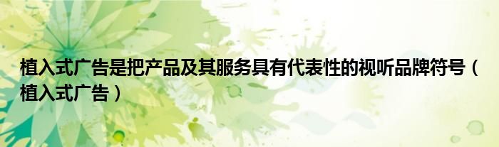 大家好,我是小科,我来为大家解答以上问题。植入式广告是把产品及其服务具有代表性的视听品牌符号,植入式广告很多人还不知道,现在让我们一起来看看吧!