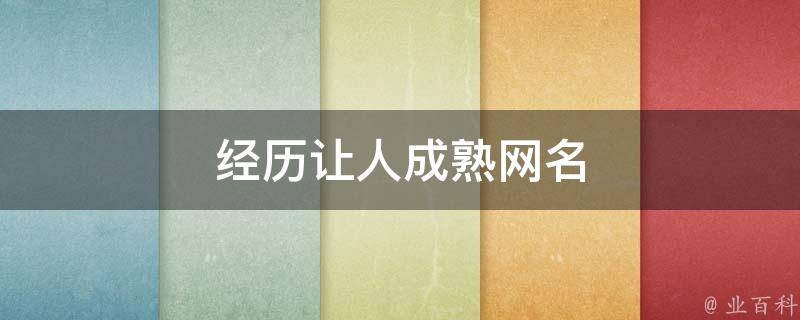 经历让人成熟的网名有:越长大越孤单、有的故事是事故、看淡别离、静待另一片天、人艰不拆、伤会慢慢愈合、青丝到白发、就此长大了、我比想象中勇敢、再见爱情、试着让自己坚强、乐观而坚强、此时的颓废、理智去爱、懂得失去、以后的以后等。