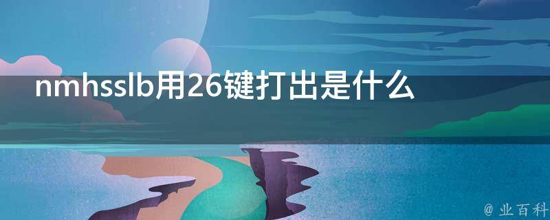 26键打出nmhsslb并没有固定的汉字对应,因为拼音中没有类似的发音。26键是一种输入法,它是一种通过键盘输入拼音然后再根据拼音的音节组合来输出汉字的输入方式。在使用26键输入法时,输入拼音的过程被称为键入,然后根据候选字词的提示选择合适的汉字。