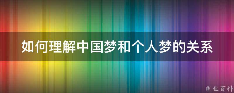 1、个人梦是中国梦的基础:中国梦是全民共同的梦想,代表了强国富民、和谐稳定、民主进步的愿景。然而,中国梦所关注的问题是宏大而理想化的,而个人梦则是每个人个体的追求和期盼。