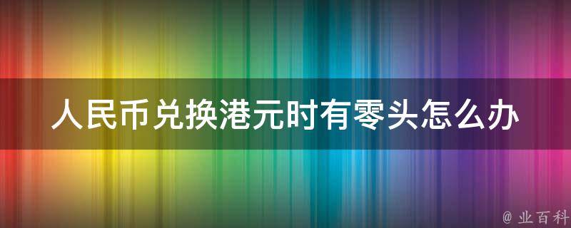 人民币兑换港元时有零头,可以去柜台完成兑换,无论整数还是小数,都可以兑换。银行和机构会根据兑换金额收取一定的手续费,需要提前了解清楚。某些机构可能会对兑换金额进行限制,超过限额可能需要提供额外的材料。兑换时一定要妥善保管好兑换凭证,以便日后核对或证明。