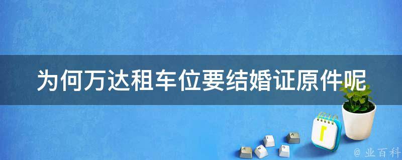 万达租车位要结婚证原件可能是为了核实车位使用者的身份信息,确保车位使用者的权益和安全。结婚证是证明夫妻关系的有效证件,可以通过验证结婚证原件来确认车位使用者的身份和婚姻状况,从而避免出现不必要的纠纷和风险。
