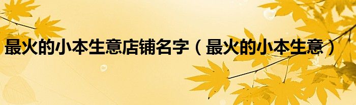 最火的小本生意店铺名字(最火的小本生意)