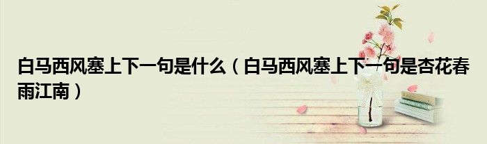 各位网友们好,我是编辑小夏,为大家解答白马西风塞上下一句是什么,白马西风塞上下一句是杏花春雨江南问题。一起往下看看