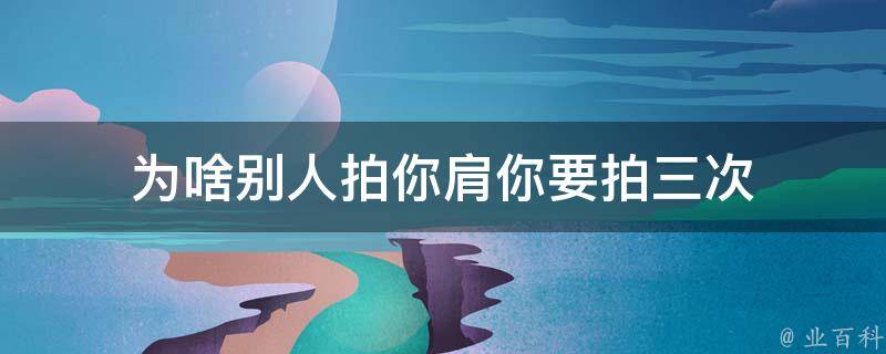 别人拍你肩你要拍三次是一种中国文化中的习俗。在中国,人们经常会在给别人拍肩膀时掸三下,这被认为是一种传统的祝福和表达关心的方式。这个动作一般用于朋友之间、亲密关系的人之间或者长辈与晚辈之间。掸三下肩膀的动作有助于传达情感和友好,同时也可以减轻被拍者的压力和疲劳。