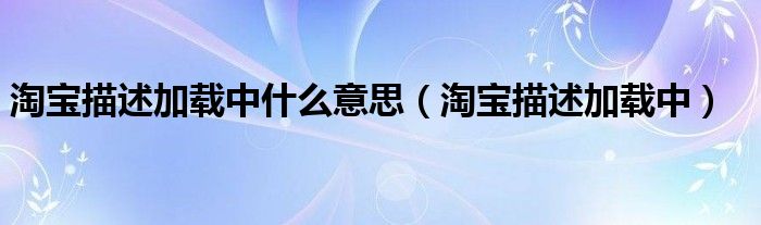 今天小饼为大家解答以下问题,关于淘宝描述加载中什么意思,淘宝描述加载中很多人还不知道,现在让我们一起来看看吧!