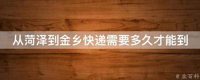从菏泽到金乡快递需要1天时间才能到,具体到达时间会因快递公司、天气、交通等多种因素而有所不同。如果您想了解具体的到达时间,建议联系快递公司客服或者查询快递物流信息,以获得最准确的信息。