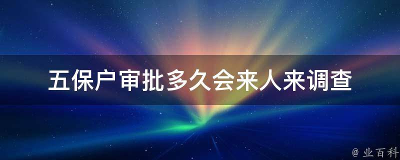 视情况而定。如果申请材料齐全、符合条件,审批流程将会相对较快,在1个月内就能批准。但如果申请材料不齐全或不符合条件,审批流程将会相对缓慢,需要三个月的时间。工作人员会对申请人的家庭进行现场核查,确保申请人符合五保的条件,并对申请材料进行审核。