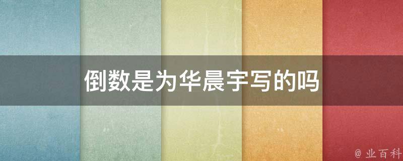 倒数不是为华晨宇写的。《倒数》邓紫棋讲的是在人生倒数过程中、有限的时间里,有无限种爱的可能,以音乐对现实进行灵魂叩问,针对爱情关系抛出赤裸的话题供人思考,令听众在音乐中懂得珍惜时间及身边的爱,鼓励听众去爱身边所爱的人。