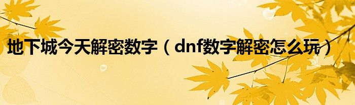 今天小饼为大家解答以下问题,关于地下城今天解密数字,dnf数字解密怎么玩很多人还不知道,现在让我们一起来看看吧!
