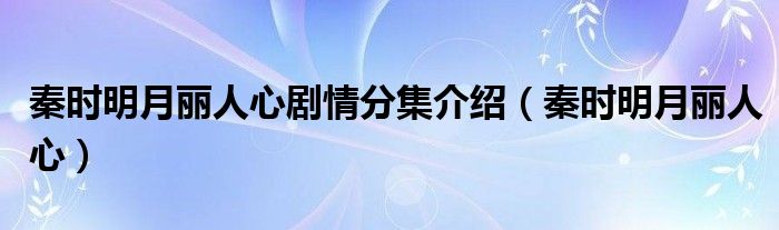 大家好,我是小科,我来为大家解答以上问题。秦时明月丽人心剧情分集介绍,秦时明月丽人心很多人还不知道,现在让我们一起来看看吧!