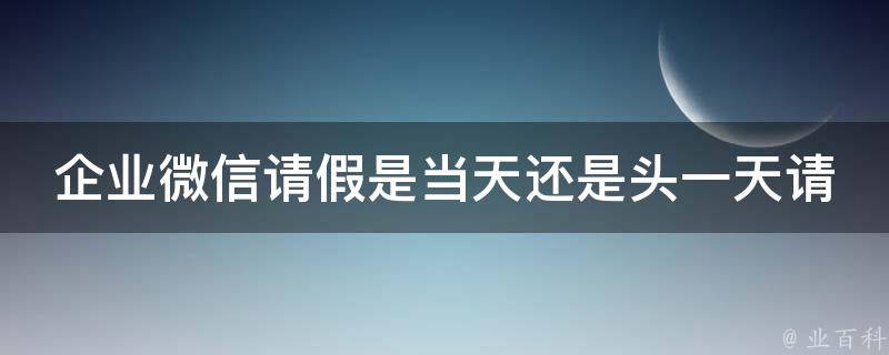 企业微信请假是头一天请,便于用人单位安排工作。除了突发事件以外,请假应该至少提前一天报批,而且最好是在工作时间进行。提前一天请是一种礼貌一种尊重,也代表你可能确实有事要请假,如果是当天请假,那有可能让领导认为你起晚了、迟到了或者突然不想上班了,容易对你印象不好。