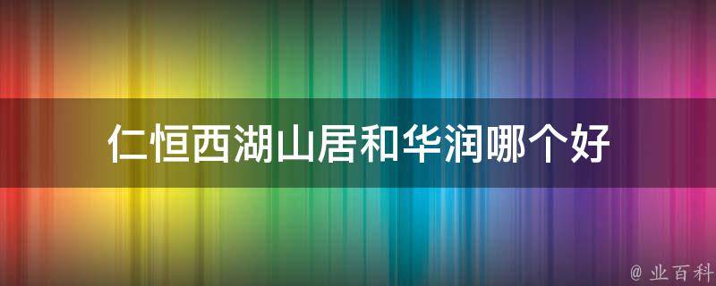仁恒西湖山居和华润都好,有不同的特点。武汉城建仁恒西湖山居主推户型建面约137-191平方米,房源特点为下叠户型,首层带宅前绿地,配置了客厅、餐厅、厨房以及一间卧室。华润的房子户型有多种选择,小区内部环境好,绿化面积高。
