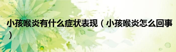 大家好,乐天来为大家解答以下的问题,小孩喉炎有什么症状表现,小孩喉炎怎么回事很多人还不知道,现在让我们一起来看看吧!