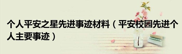 大家好,小联来为大家解答以上的问题。个人平安之星先进事迹材料,平安校园先进个人主要事迹这个很多人还不知道,现在让我们一起来看看吧!