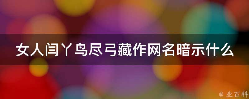 女人闫丫鸟尽弓藏作网名暗示目的达到后,将曾经帮助过自己的人一脚踢开。鸟尽弓藏的原义鸟打完了,就把弓收藏起来,旧时用来比喻封建帝王取得政权之后,功臣遭到废弃或杀害。后比喻目的达到后,将曾经帮助过自己的人一脚踢开。常与兔死狗烹连用,含贬义。