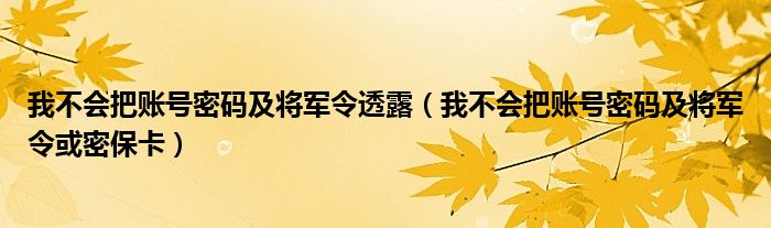 大家好,小联来为大家解答以上的问题。我不会把账号密码及将军令透露,我不会把账号密码及将军令或密保卡这个很多人还不知道,现在让我们一起来看看吧!