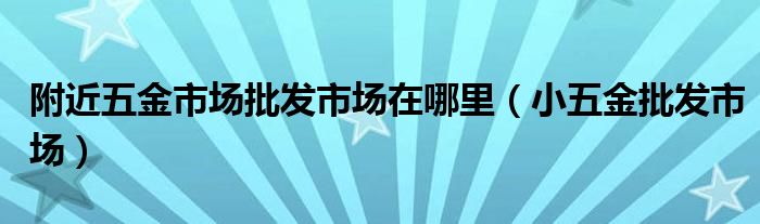 大家好,我是小科,我来为大家解答以上问题。附近五金市场批发市场在哪里,小五金批发市场很多人还不知道,现在让我们一起来看看吧!