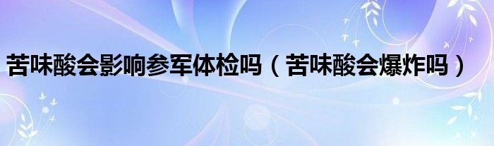 大家好,小虎来为大家讲解下。苦味酸会影响参军体检吗,苦味酸会爆炸吗很多人还不知道,现在让我们一起来看看吧!