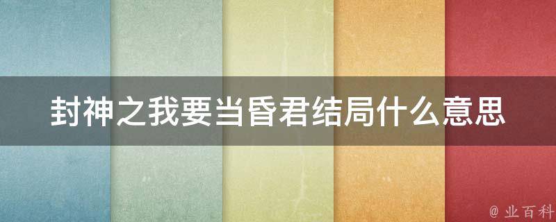 小说《封神之我要当昏君》结局的意思是主角想当昏君,结果反而被大家当成了明君。在小说中,主角穿越成绝世昏君商纣王,还自带昏君系统,两件幸运的事情重叠在一起,主角本以为刷新昏君点数如同探囊取物,没有想到所有的事情做完后,成为了千古一帝。
