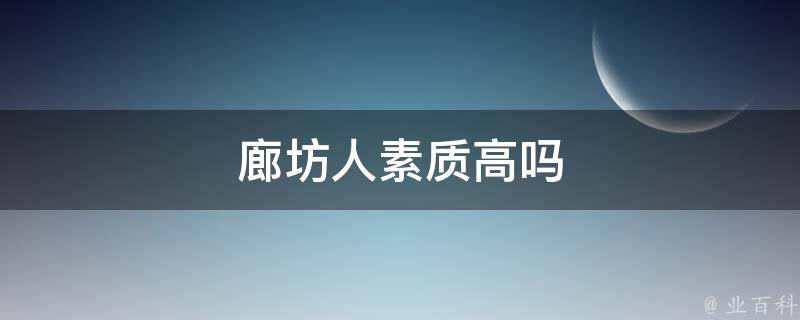 视情况而定。一些廊坊人具有良好的教养和社会责任感,但也有一些人存在一些不良行为和习惯。廊坊市地处京津冀核心区域,交通便利,经济发展迅速,这为当地居民提供了良好的生活环境和教育资源。随着城市的发展,廊坊人民的教育水平和文化素质也在不断提高。