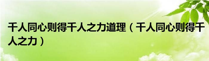 大家好,小联来为大家解答以上的问题。千人同心则得千人之力道理,千人同心则得千人之力这个很多人还不知道,现在让我们一起来看看吧!