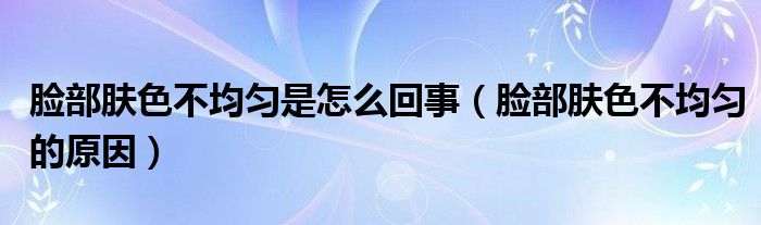 大家好,乐天来为大家解答以下的问题,脸部肤色不均匀是怎么回事,脸部肤色不均匀的原因很多人还不知道,现在让我们一起来看看吧!