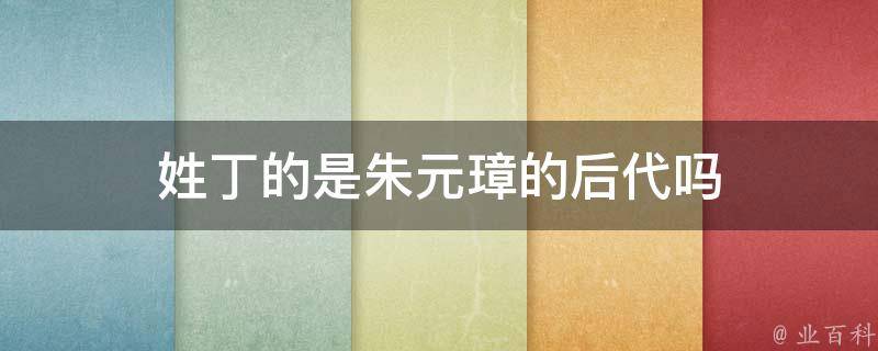 姓丁的不是朱元璋的后代。丁姓是中华姓氏之一,是一个典型的多民族、多源流姓氏,始祖为丁公汲。丁姓在宋版《百家姓》中位列第177位,当代丁姓的人口已达到576万,为全国第48位姓氏,大约占全国人口的0.43%。