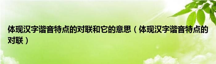 大家好,我是小科,我来为大家解答以上问题。体现汉字谐音特点的对联和它的意思,体现汉字谐音特点的对联很多人还不知道,现在让我们一起来看看吧!